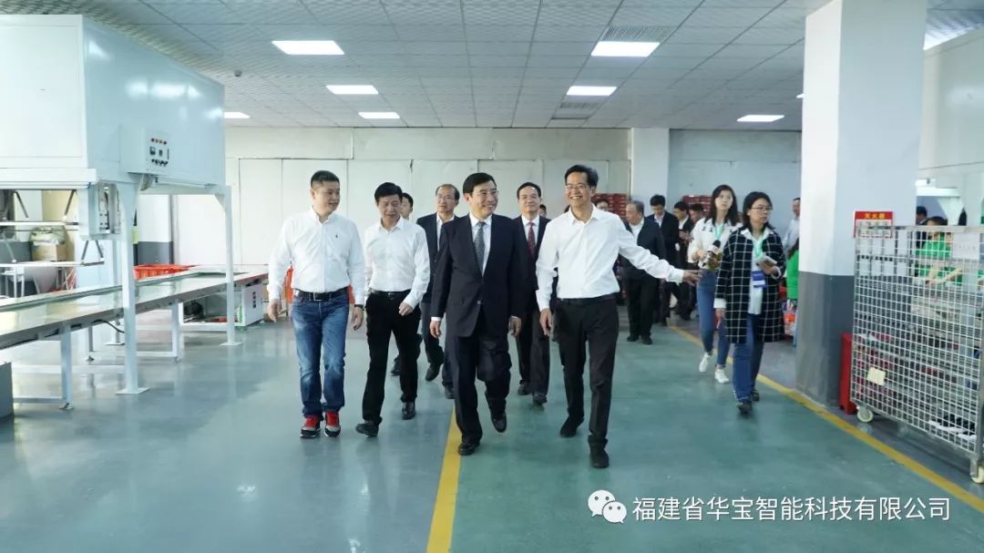 同日,工業和信息化部部長苗圩、 國家制造強國建設戰略咨詢委主任周濟、 福建省人民政府副省長林寶金,全國各地工業和信息化主管部門代表,智能制造試點示范企業、相關制造業企業、智能制造解決方案商、工業互聯網企業等代表,中國工程院等有關科研機構、高校專家等百余人來到 華寶智能科技有限公司晉江基地的制鞋智能產線項目應用現場 。